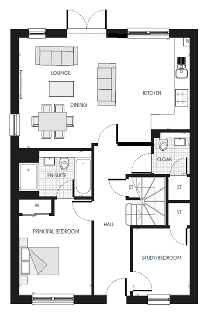 The Bruce is an attractive four-bedroom detached bungalow. Featuring stylish French doors with views of the garden, the spacious lounge / dining room is the ideal setting for entertaining family and friends. The separate, well-appointed breakfasting kitchen is perfect for budding chefs who like to cook up a storm.